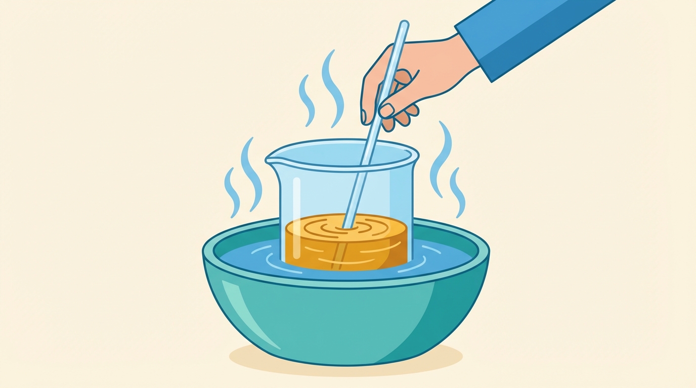 Prepare hot water for the bath. The water should be very hot but not boiling, around 50-60 degrees Celsius is ideal. Think "very hot tap water." Pour it into your bowl or container, deep enough that your glass container can sit in it.