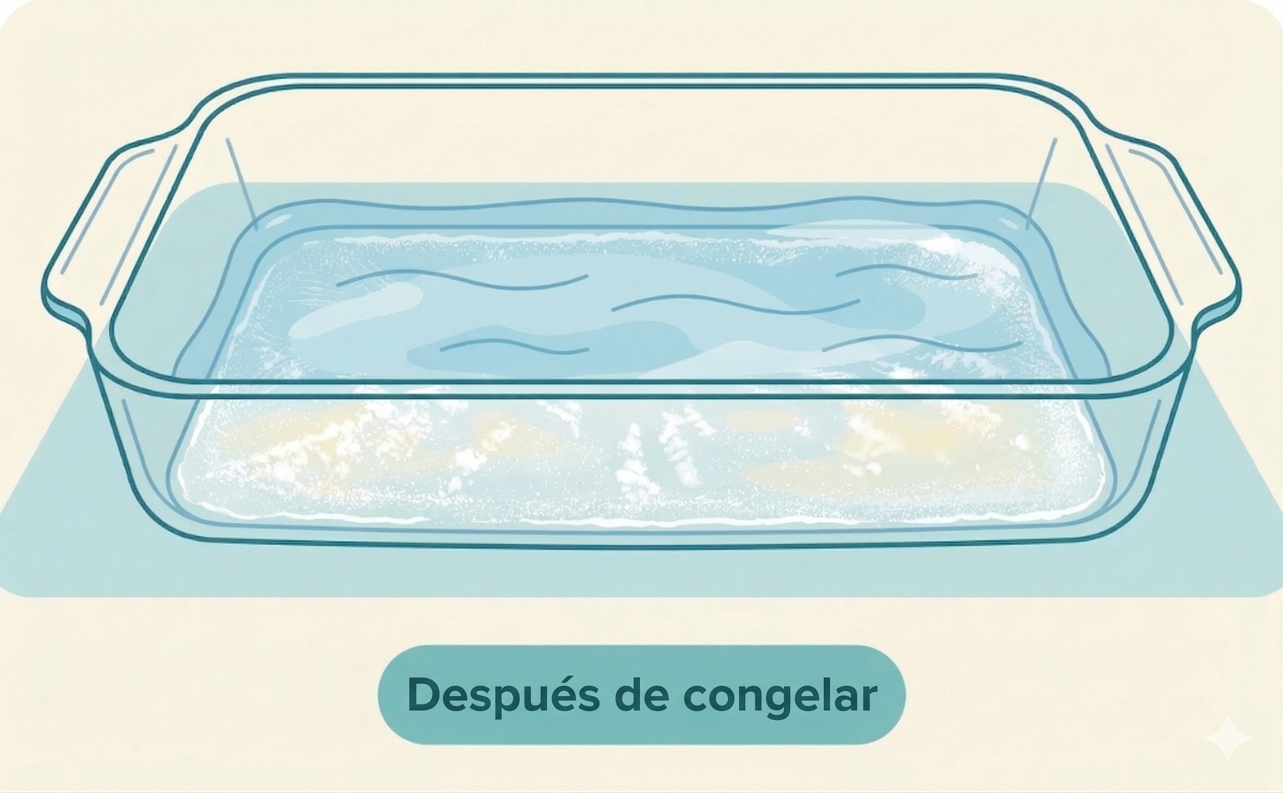| Molde (refractario) de vidrio plano | Molde de horno Pyrex o similar. | Para la cristalización. Debe caber en tu congelador. Elige un molde lo más grande posible, y preferiblemente con tapa. |