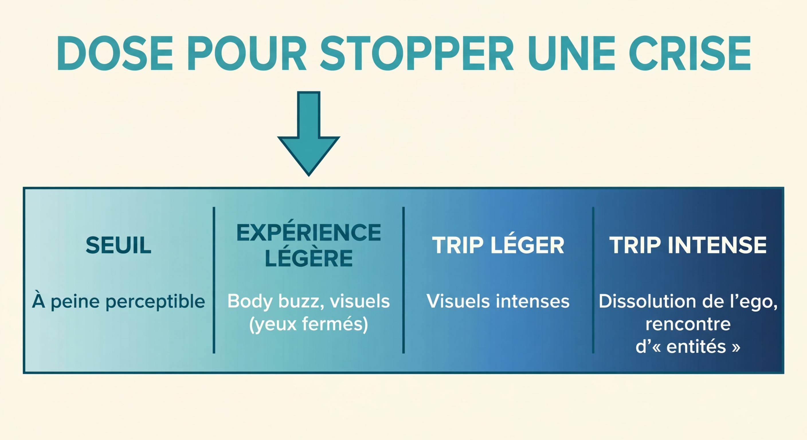 Les doses d'arrêt de crise se situent en bas du spectre, loin d'une expérience psychédélique complète.